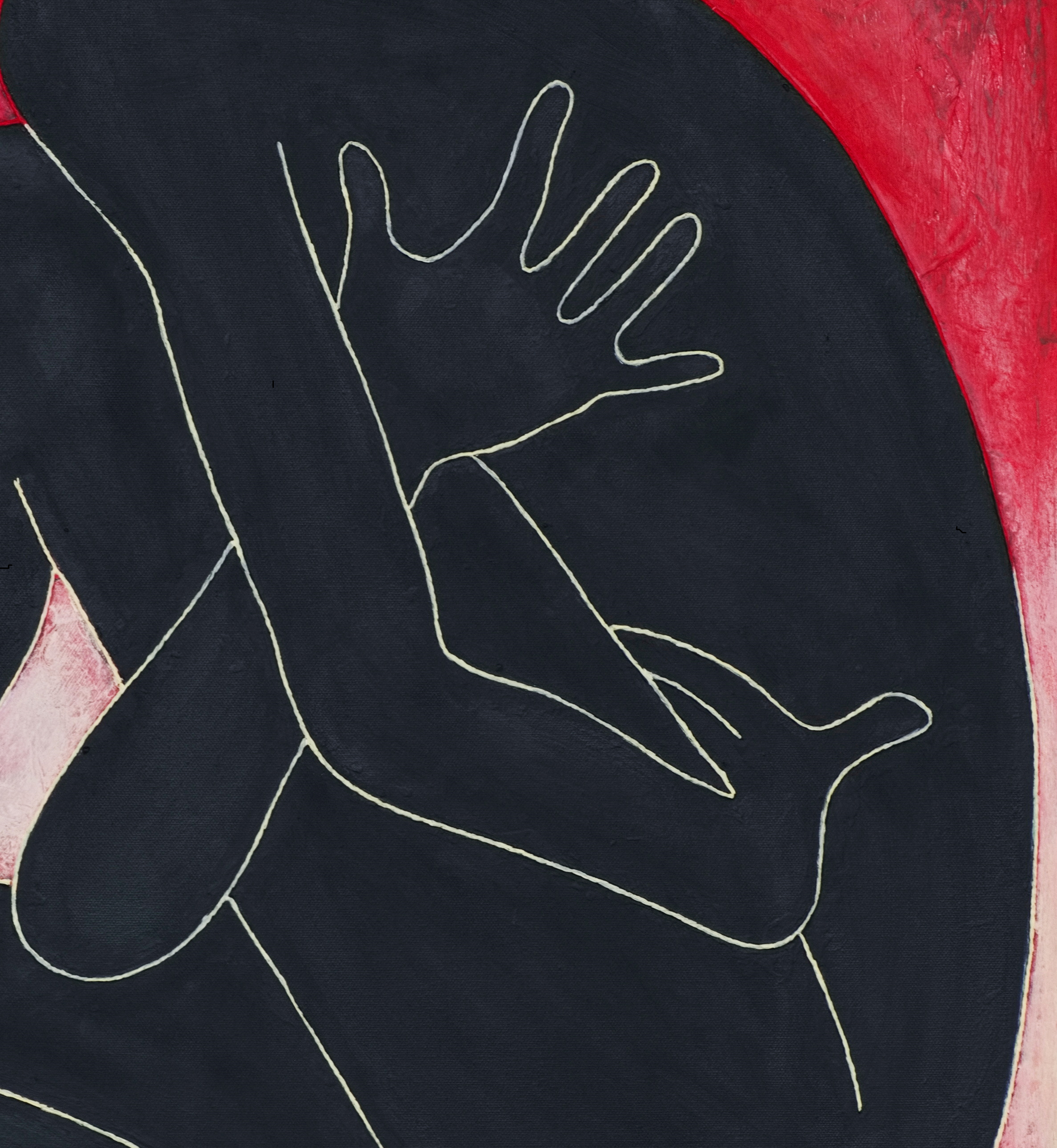 I work primarily with acrylic on canvas, incorporating paper rope and other materials through pouring, layering, and constructive processes. These techniques allow the surface to develop through both controlled decisions and material behavior.
